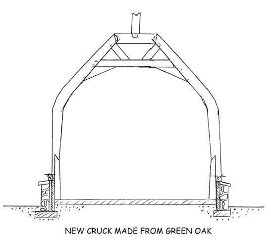 Please click on the Plan numbers below as required and use the back button on your tool bar to return to this page. PLan 1 This plan will show you the layout of the main house as it will eventually look when completed. Plan 2 A plan of the site showing all the buildings. Plan 3 A plan of the small barn (the Hafod), conservatory and The Barn (for cars, etc.) Plan 4 Drawing of the old cruck frame Plan 5 Drawing of the new cruck frame Plan 6 Drawing of a box frame Plan 7 Drawing of some sheerlegs Back to Home Page