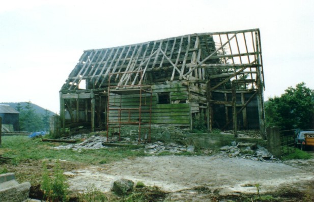 Pictures of the small barn, The Hafod showing work in progress, the last one taken from the inside looking west. |